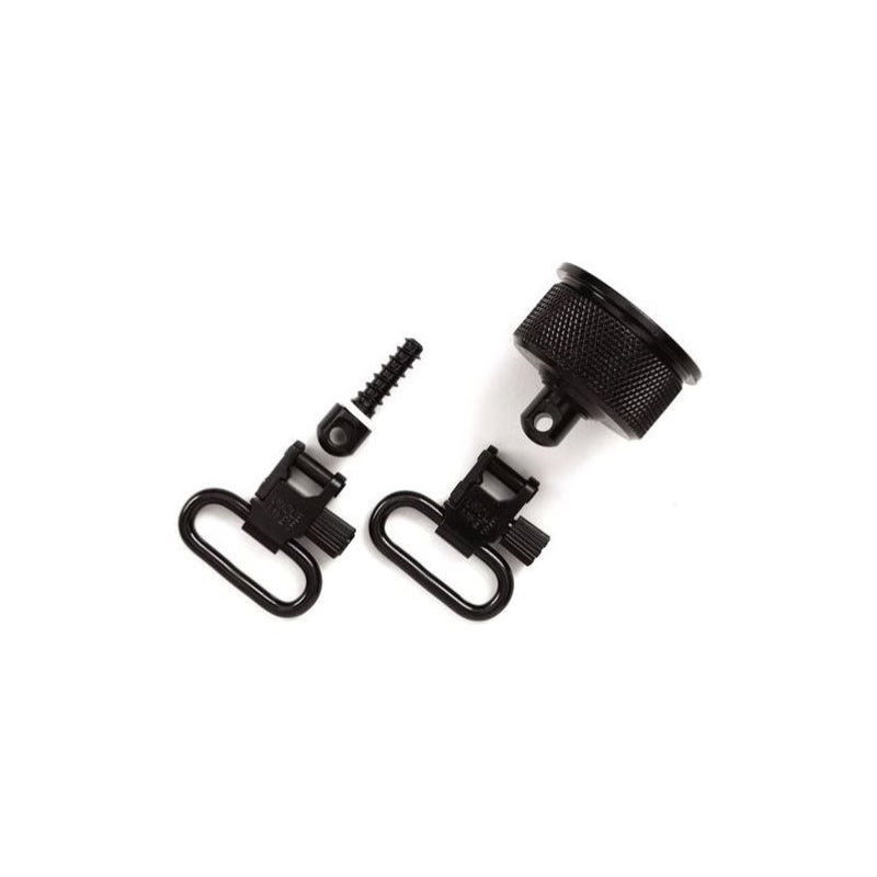 Replacement magazine cap with swivel base, 3/4" wood screw butt-stock swivel base and two Super Swivels.